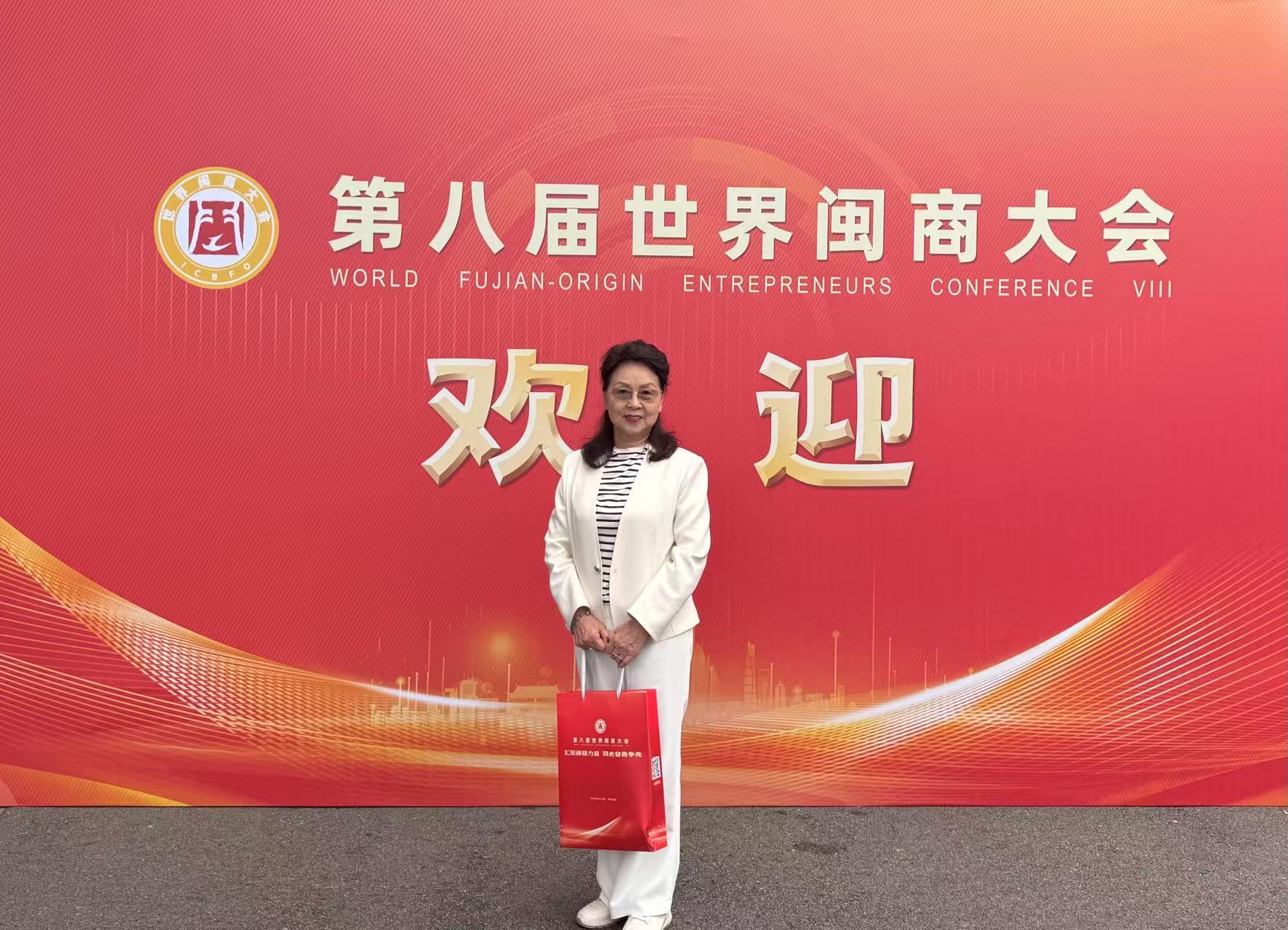 24848威尼斯董事长、福建新侨人才联谊会名誉会长丁友玲应邀出席第八届世界闽商大会